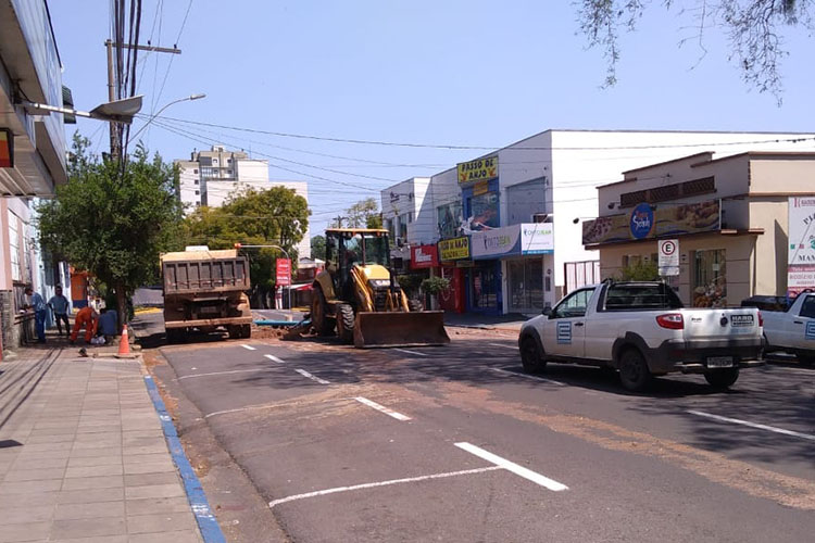 O trânsito ficou interrompido por algumas horas, na tarde desta segunda-feira, 12, na Rua Tenente Coronel Brito, no cruzamento com a Ramiro Barcelos, Centro de Santa Cruz do Sul. Uma equipe da Companhia Rio-Grandense de Saneamento (Corsan) trabalhou no conserto de um problema na rede de água.