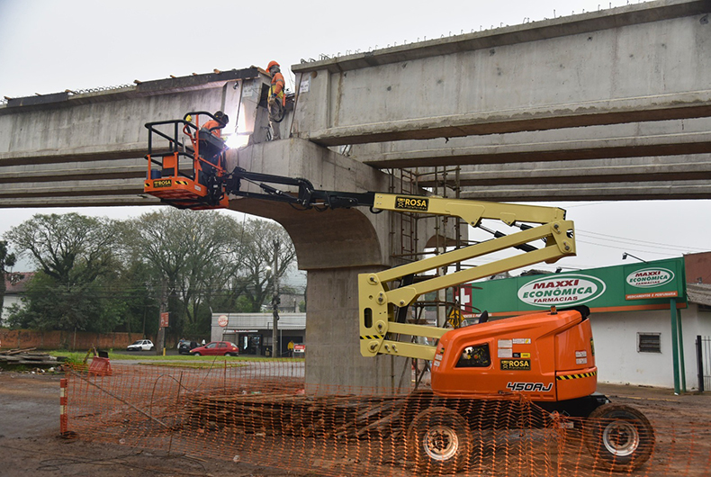 A colocação das 13 primeiras vigas longarinas na estrutura do Viaduto do Arroio Grande, concluída na quinta-feira, 12, permitiu ao consórcio formado pelas empresas Giovanella e Porto Beton dar início a outra fase do trabalho.
