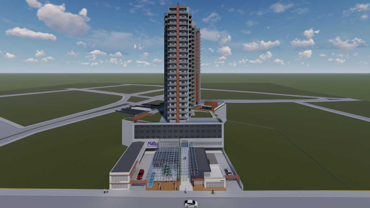 Com duas torres, o prédio terá 19 andares de apartamentos de dois e três dormitórios. Além destes, são três andares de estacionamentos, uma cobertura, com quatro unidades, e um andar de área social para os moradores. “No térreo será o estacionamento do Supermercado Miller e um mall com 15 pequenas lojas e mais quatro salas comerciais, de frente para a Imigrante. O segundo andar será todo ocupado pelo supermercado”, antecipou o empreendedor.