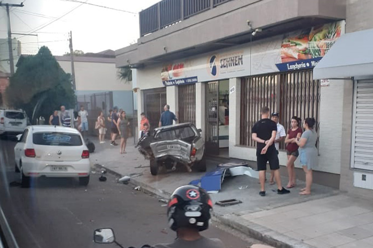 Um VW Gol, conduzido por um homem de 25 anos, bateu em três caminhonetes, que estariam estacionadas, uma VW Saveiro, uma Renault Duster e um Hyundai Tucson.