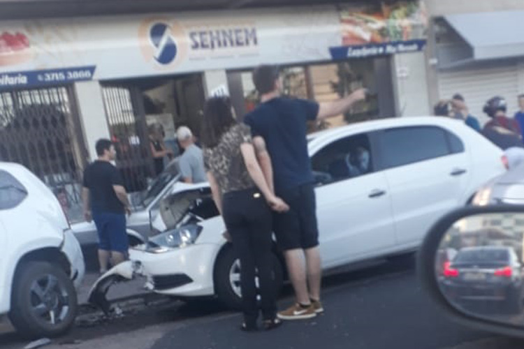 Um acidente no início da noite desta terça-feira, 17, envolveu quatro veículos e deixou duas pessoas feridas, na Avenida Deputado Euclydes Nicolau Kliemann, no Bairro Arroio Grande.