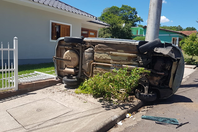 Segundo o motorista, que dirigia um Voyage com placas de Santa Cruz do Sul, ele teria perdido o controle do veículo e atravessado a pista contrária, chocando-se com a grade. Ele se feriu levemente e foi atendido pelo Samu no local. A Brigada Militar também esteve na ocorrência. Não havia outras pessoas no carro e ninguém da residência se feriu. O trânsito no local flui sem alterações.