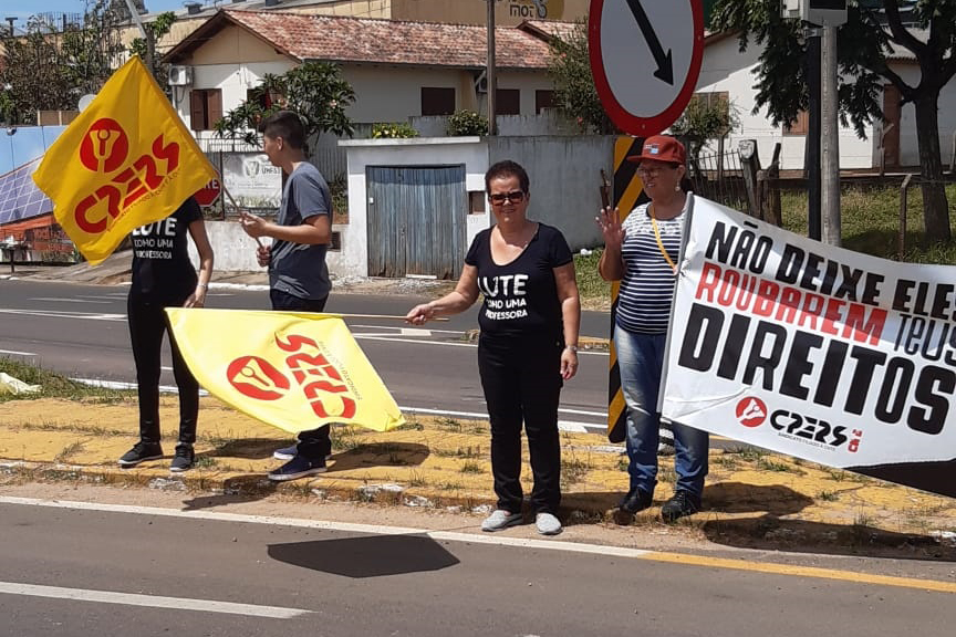Um grupo de professores de Rio Pardo fez mais um protesto. Desta vez, na BR-471. Os docentes em greve pedem que a comunidade siga apoiando a classe. No final de semana, eles realizaram um pedágio em que entregaram fitas amarelas no Centro da cidade.