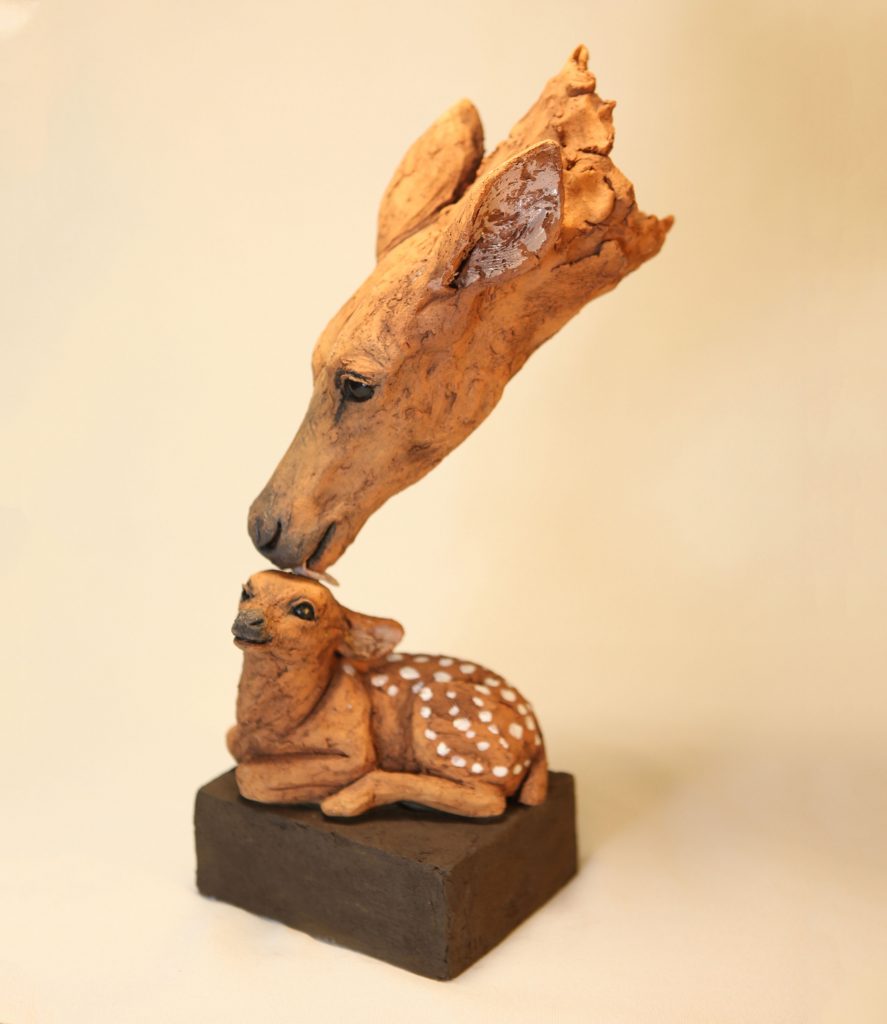 Do início da peça até a finalização, o processo varia bastante, dependendo da complexidade e do tamanho, mas são cerca de duas semanas de trabalho, considerando a etapa de modelagem, a secagem, as queimas e o acabamento com óxido. Não existem moldes. As mãos e o coração da artista definem os contornos, as ranhuras, os detalhes de cada obra – e o olhar terno e expressivo que é característico da arte de Marília Klein. O tempo dedicado, o investimento em materiais e o fator exclusividade determinam o valor das peças.