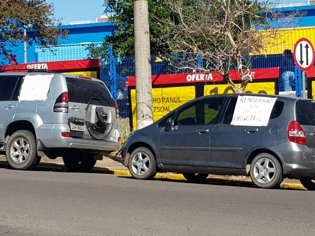 Cartazes nos carros pedem a abertura das lojas | Foto: Maria Regina Eichenberg