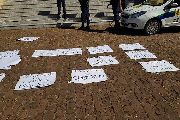 Os veículos que participaram da carreata tinham cartazes pendurados nas janelas, que foram deixados em frente ao Palacinho após a reivindicação, como ato para tentar fazer com que o prefeito Telmo Kirst permita a operação de todas as lojas ainda nesta quinta-feira. Após a ação em frente à Prefeitura, o grupo se dispersou.