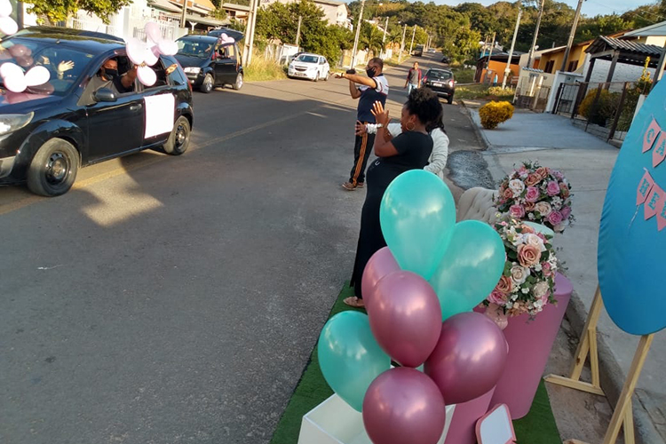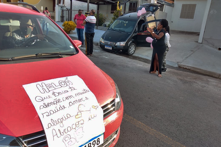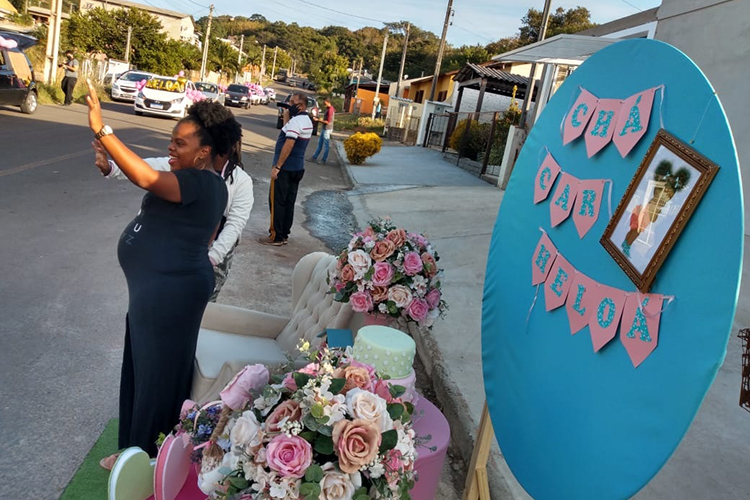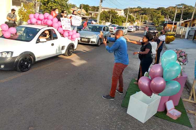 Emocionada, a futura mamãe se disse surpresa com a carreata em homenagem à filha. “Eu não esperava, fiquei muito feliz, pois a gente não está podendo ver ninguém, e agora todo mundo está aqui.” Uma a uma, as famílias passaram em frente à casa da família com balões, músicas e presentes.