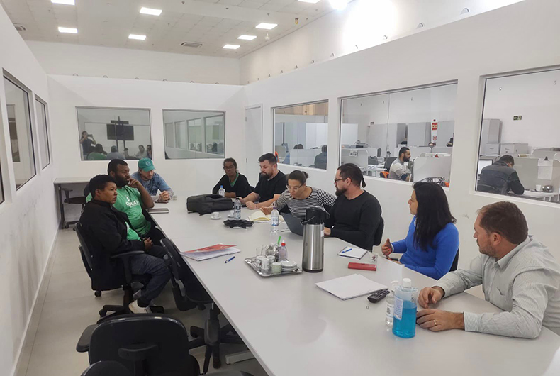 Integrantes da coordenação da Cooperativa de Catadores e Catadoras de Santa Cruz do Sul (Coomcat), em conjunto com a Secretaria Estadual do Movimento Nacional dos Catadores e Catadoras de Materiais Recicláveis (MNCR) e a entidade de apoio Centro de Solidariedade, Apoio Mútuo e Meio Ambiente (Centro Sama), estiveram reunidos com o secretário de Meio Ambiente, Saneamento e Sustentabilidade de Santa Cruz do Sul, Jaques Eisenberger, e com a diretora de Gestão Ambiental e Sustentabilidade, Gabriela Ottmann, para dialogar sobre a renovação dos contratos da Coleta Seletiva Solidária e gestão da usina municipal de triagem.