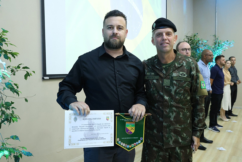 O coordenador da Defesa Civil, Claiton Luís Kolling, representou a Prefeitura de Santa Cruz do Sul e a Secretaria de Segurança e Mobilidade Urbana ao receber uma homenagem pela atuação nas enchentes. O evento ocorreu em Santa Maria, no Quartel-General da 6ª Brigada de Infantaria Blindada (BIB).