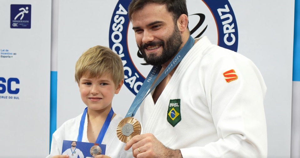 Rafael Macedo agradeceu o convite da Ajusc e exaltou a presença de diversas crianças no tatame. “É muito legal ver os olhinhos brilhando, vendo a medalha olímpica. É uma referência para seguir no esporte. Um dia fui essa criança olhando para um ídolo. Fico feliz por ser uma referência agora. Espero que esse momento possa inspirá-los para que sejam cada vez melhores”, destacou.
