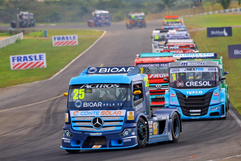 Olá, meus amigos. André Black por aqui com o Pé na Estrada, programa da Rádio Gazeta FM 107,9. Neste fim de semana, Goiânia vai receber as emoções da Copa Truck. A classificação no sábado será às 15 horas. No domingo, as corridas estão marcadas para 12h40 e 13h10. A transmissão da sexta etapa será na Band e no YouTube da categoria.