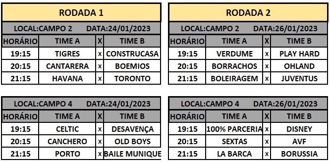 Grupo A: Tigres, Construcasa, Celtic e Desavença