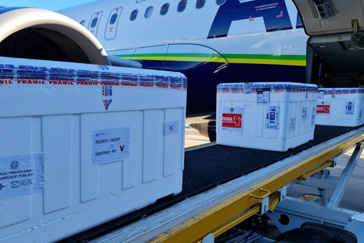 Também chegaram ao Rio Grande do Sul no início da tarde desta terça-feira, no mesmo voo da remessa de Coronavac, mais 269.100 doses de Astrazeneca, que serão reservadas, por recomendação do Ministério da Saúde, para aplicação de D2.