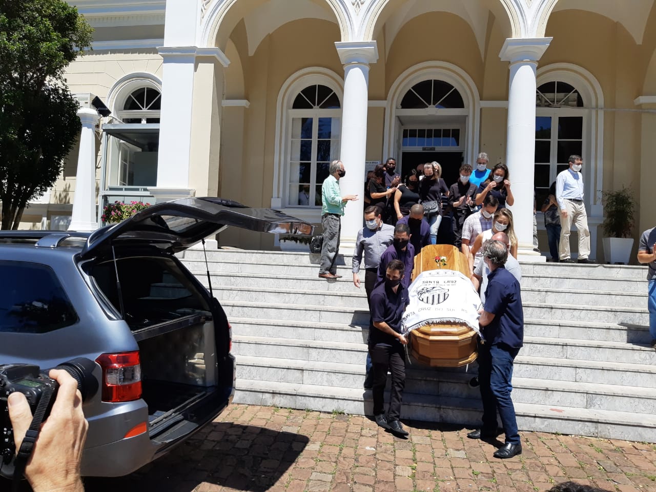 O bispo diocesano dom Aloísio Alberto Dilli presidiu a cerimônia religiosa de despedida, no Salão Nobre do Palacinho, antes da saída do cortejo que levou o corpo pelas principais ruas da cidade. “Vamos adiante”, disse ele na cerimônia, fazendo menção às últimas palavras ditas por Telmo. Em razão das medidas de distanciamento social por conta da pandemia, não foi permitida a permanência no espaço, apenas a passagem pelo local. O sepultamento será às 11h30, no Cemitério Católico de Santa Cruz do Sul.