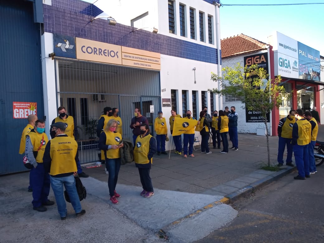 Segundo o secretário-geral do Sindicato dos Trabalhadores em Correios e Telégrafos do Rio Grande do Sul (Sintect-RS), Alexandre Nunes, 85% dos trabalhadores do Centro de Distribuição de Santa Cruz estão em greve e 70% dos trabalhadores da agência do Centro. Isso ocorre, conforme Nunes, por três situações. “Uma delas é a forma irresponsável como a empresa trata a questão da pandemia, quando se nega a fazer a assepsia dos locais de trabalho e a testagem no local de trabalho onde há colegas contaminados”, fala.