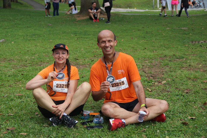 Para Maria Clarice Hochscheidt, de 56 anos, e Luciano Corrêa de Ávila, de 54, a data não poderia ser mais significativa. O casal completa sete anos de casados, em uma união formada principalmente pela corrida de rua. Segundo Luciano, ambos curtiam uma página no Facebook sobre corrida de rua com 60 mil inscritos de todo o Brasil. Por meio daquela página, estabeleceram contato e tornaram-se namorados, ainda sem que houvesse um encontro pessoal.