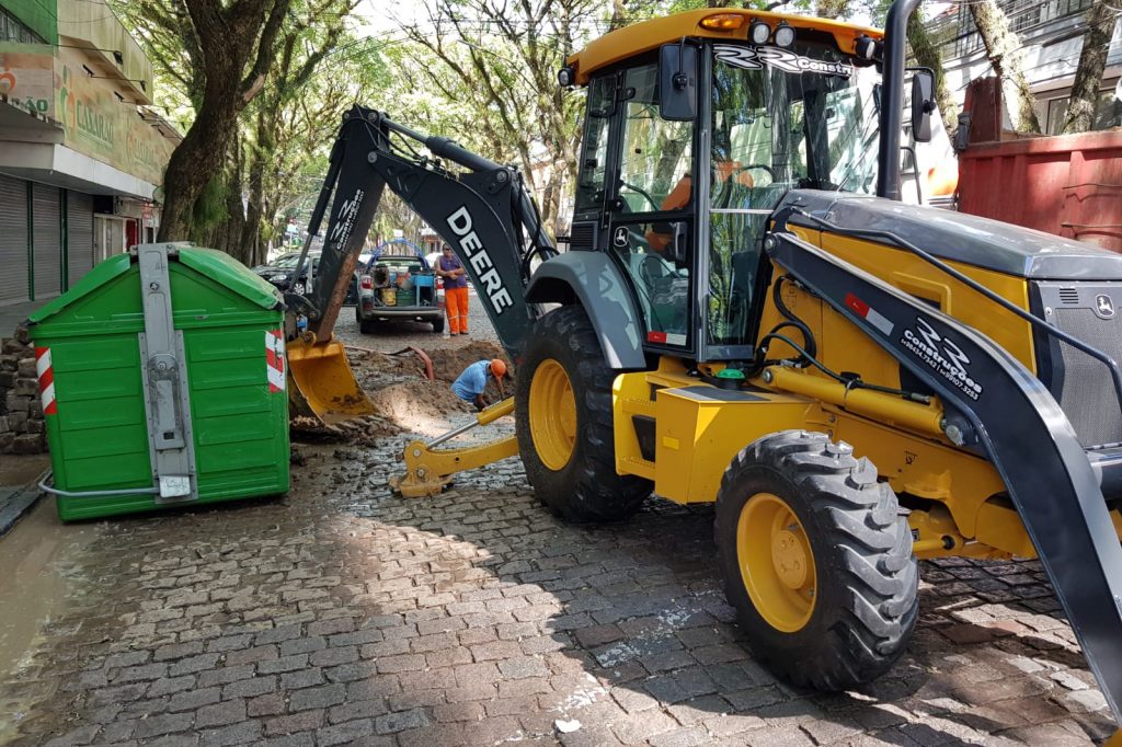 Uma equipe da Companhia Riograndense de Saneamento (Corsan) trabalha no conserto de uma rede de água na Rua Marechal Floriano, entre as quadras das ruas 28 de Setembro e Borges de Medeiros, desde o início da manhã desta terça-feira, 24. O trânsito no trecho está bloqueado.
