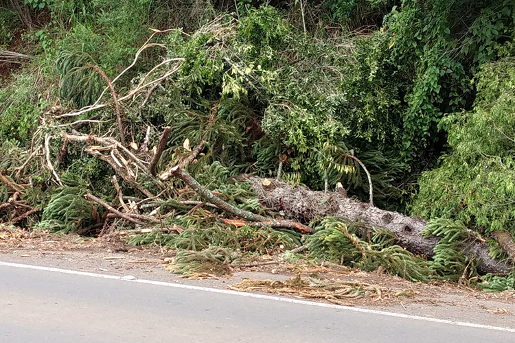 Segundo Lau, uma das árvores suprimidas, antes de cair, ainda atingiu um poste de energia elétrica que fica próximo ao Cemitério Evangélico e a estrutura que sustenta a lâmpada ficou torta. “Em alguns pontos as árvores caíram sobre as cercas das propriedades. Ontem assisti a uma senhora de idade tendo que pagar alguém para remover o que foi deixado na frente da sua residência.
