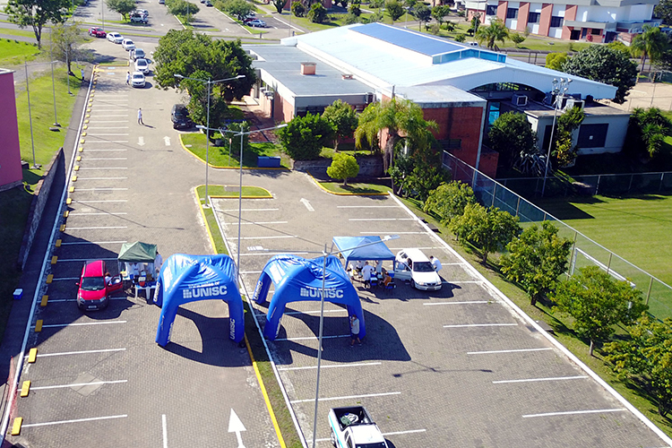 Na Unisc, são dois pontos para recebimento da segunda dose. De carro, por drive-thru, a orientação é entrar pelo portão principal, na Avenida Independência e contornar o campus até o Memorial da Unisc. A pé, o imunizante é administrado no ginásio de esportes.