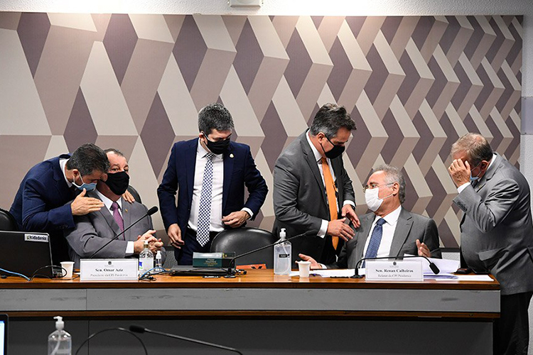 “Não podemos aprovar requerimentos para tirar o foco da investigação”, afirmou Renan, em debate com os governistas. “O foco da CPI não pode ser aquele dado pelo relator”, retrucou Marcos Rogério (DEM-RO), aliado de Bolsonaro. O comentário provocou reação da oposição. “Também não pode ser o que veio do Palácio do Planalto”, disse Randolfe Rodrigues (Rede-AP). Após o bate-boca, a sessão foi suspensa por meia hora.