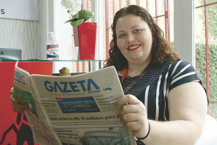 A identificação com as demandas e valores locais é um dos aspectos evidenciados não só por quem a faz, mas também entre aqueles que acompanham a Gazeta do Sul. É o caso da santa-cruzense Amanda Gehres, de 37 anos. Ela cresceu vendo a avó ler o jornal e hoje mantém a assinatura impressa e digital. “Meus pais gostam do papel. No meu dia a dia, porém, acabo acessando o Portal Gaz para me manter informada”, diz a corretora de imóveis, moradora do Bairro Esmeralda. Para ela, além do noticiário, a Gazeta se tornou um canal para divulgação de suas ofertas por meio dos Classificados. “O jornal é um importante meio para informar, mas também para fazer negócios”, acrescenta.
