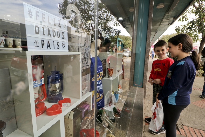 As crianças também tiveram dúvidas sobre o melhor mimo para o papai. Enquanto olhavam uma vitrine da rua Tenente Coronel Brito, no Centro, os irmãos opinavam sobre as possibilidades. “Eu não sei ainda. Eu queria dar pra ele uma caneca que ele pudesse levar pra outros lugares”, disse Valentina, enquanto Lorenzo respondia, apontando para um copo de chope. “Eu gostei desse daqui, ele tem uma campainha.”