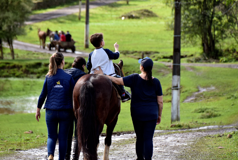 “É uma experiência bem gratificante e comovente. Acaba sendo um dia diferente para eles que estão lá sempre no mesmo ambiente. Aqui, eles têm a oportunidade de sair, ter essa vivência ao ar livre, na lida com animais”, comentou Görck. A parceria nas atividades é com a empresa Cavalo da Liberdade. Conforme a proprietária Samantha Centeno, além da experiência, a ação acaba trazendo todos os benefícios da equoterapia.