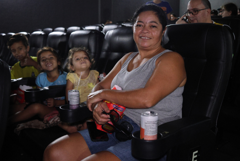 Cerca de 40 crianças que precisaram deixar suas casas em razão da enchente em Santa Cruz do Sul e estão alojadas no Parque da Oktoberfest participaram de uma atividade diferente no início da tarde dessa segunda-feira, 6. Elas ganharam uma ida ao cinema e puderam assistir ao filme Garfield – Fora de Casa no Cine Santa Cruz, que fica no Shopping Santa Cruz.