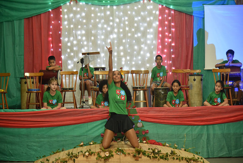 As comemorações de Natal dos bairros Schulz e Renascença surpreenderam o personagem que simboliza a data. Na quarta-feira à noite, o Papai Noel foi recepcionado com um espetáculo de dança conduzido pelas crianças participantes dos projetos sociais. No Serviço de Convivência e Fortalecimento de Vínculos (SCFV) do Bairro Renascença, um grupo com idades entre 9 e 11 anos, orientado pelos monitores Vitória Soares e Murilo Silveira, apresentou vários estilos de dança. Os pequenos iniciaram com a já conhecida Então é Natal e a tradicional Macarena.