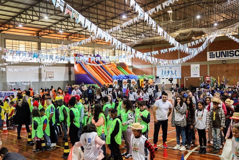 Mais de 400 crianças integrantes do projeto Craques da Bola tiveram uma tarde de diversão no último sábado, 11. Uma parceria entre a Prefeitura de Santa Cruz do Sul, por meio da Secretaria Municipal de Habitação, Desenvolvimento Social e Esporte e a Universidade de Santa Cruz do Sul (Unisc), possibilitou a realização de uma festa junina no ginásio de esportes da instituição. O evento teve brinquedos infláveis, cama elástica, brincadeiras e teatro. Também foi oferecido um lanche para todos.