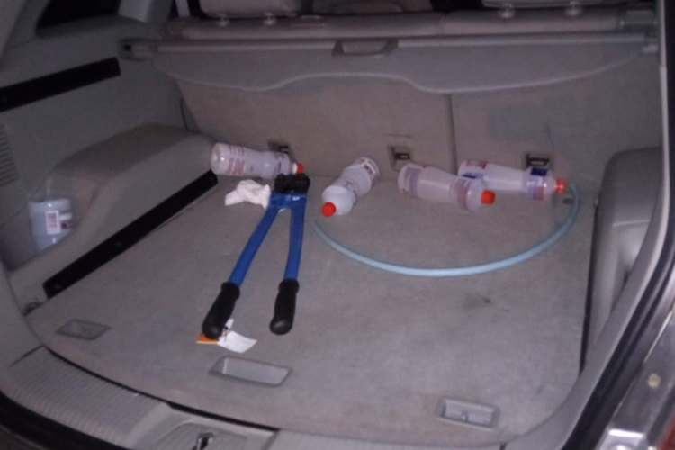 Nos arredores e dentro destes automóveis, os agentes encontraram e apreenderam material semelhante a dinamite, quantidades de álcool e gasolina, material que poderia ser usado em um coquetel molotov, um escudo de proteção e uma ferramenta para corte de metal.