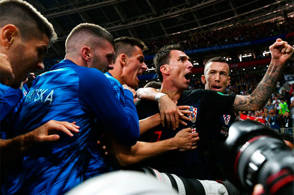 O empate croata saiu aos 23 minutos do segundo tempo, com Perisic, que colocou no canto direito de Pickford ao se antecipar à marcação em cruzamento de Vrsaljko. O gol da vitória saiu aos quatro minutos do segundo tempo da prorrogação. Mandzukic bateu cruzado, no canto esquerdo de Pickford, ao receber passe de cabeça de Perisic.
