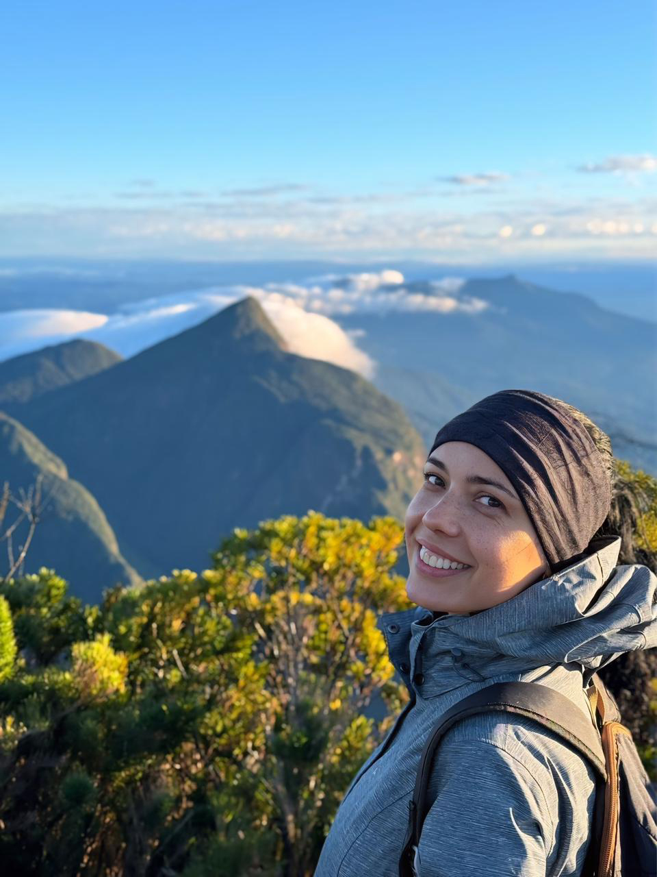 Já no Pico do Paraná, na Serra do Mar, ela subiu duas vezes. “É trilha bem puxada, com subidas e descidas, raízes. É perigosa e não recomendada para iniciantes, mas tem visuais lindos. É uma montanha que desafia o físico e mental”.