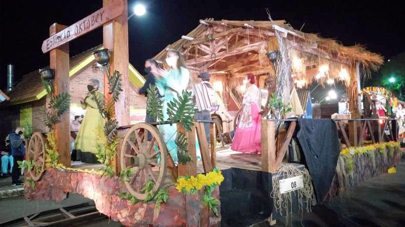 Uma das principais atrações da Oktober são os desfiles temáticos. Neste ano, com o tema voltado à integração de culturas, tem destaque uma alegoria chamada Estância da Oktober – Do Churrasco ao Bom Chimarrão, remetendo justamente à tradição gaúcha. Afinal, Santa Cruz do Sul é a sede do Enart, um dos principais eventos do tradicionalismo. Além disso, o carro alegórico coloca em protagonismo a 2ª Prenda Mirim do Estado, Amanda Kothe Bartz, do CTG Lanceiros de Santa Cruz.