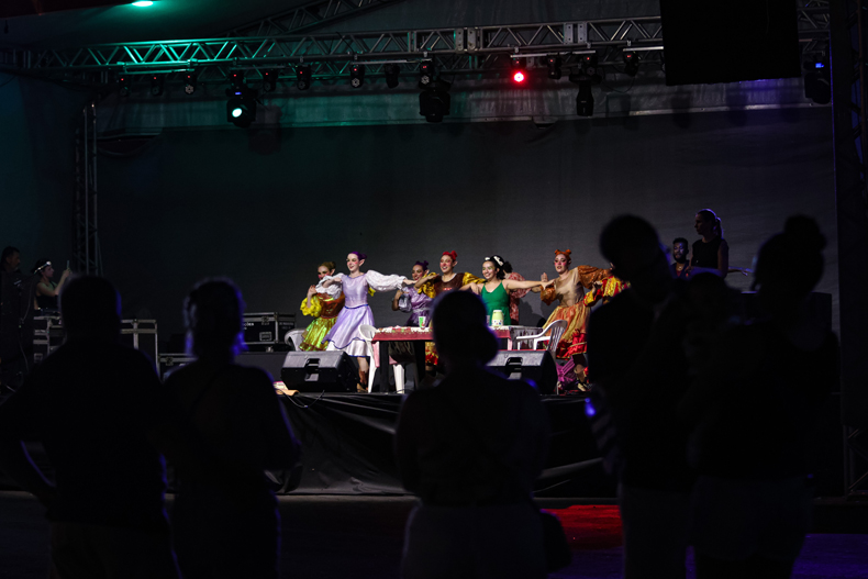 Essa foi a premissa do espetáculo Herança de Natal, apresentado pela equipe do Jef’s Studio de Dança, responsável por abrir a programação da Christkindfest na noite de sábado, 16, no Parque da Oktoberfest. Dezenas de pessoas se reuniram em frente ao palco para acompanhar a atração. Com duração de 30 minutos, a peça foi composta por dez integrantes da escola, com danças urbanas e bambolês.