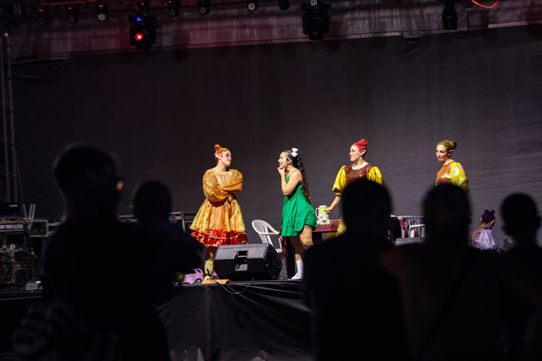 O público demorou um pouco para chegar ao Parque da Oktoberfest, nesse domingo, 17. O calor e o sol forte afugentaram as pessoas, mas assim que começou a anoitecer, o fluxo de visitantes da Vila no Noel foi intensificado, dando ainda maior luz ao palco, que estava coberto de personagens com roupas coloridas e prontos para contar uma história que mistura a emoção do período natalino com o bom humor cotidiano das famílias.