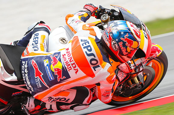 Sem qualquer chance de lutar pelo título do Mundial de MotoGP nas duas últimas provas da temporada, o espanhol Dani Pedrosa conquistou a pole position da etapa da Malásia, neste sábado, 28, ao cravar o tempo de 1min59s212 com a sua Honda no Circuito Internacional de Sepang, em Kuala Lumpur.