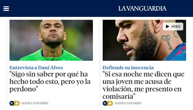 Daniel Alves concedeu entrevista ao jornal catalão La Vanguardia