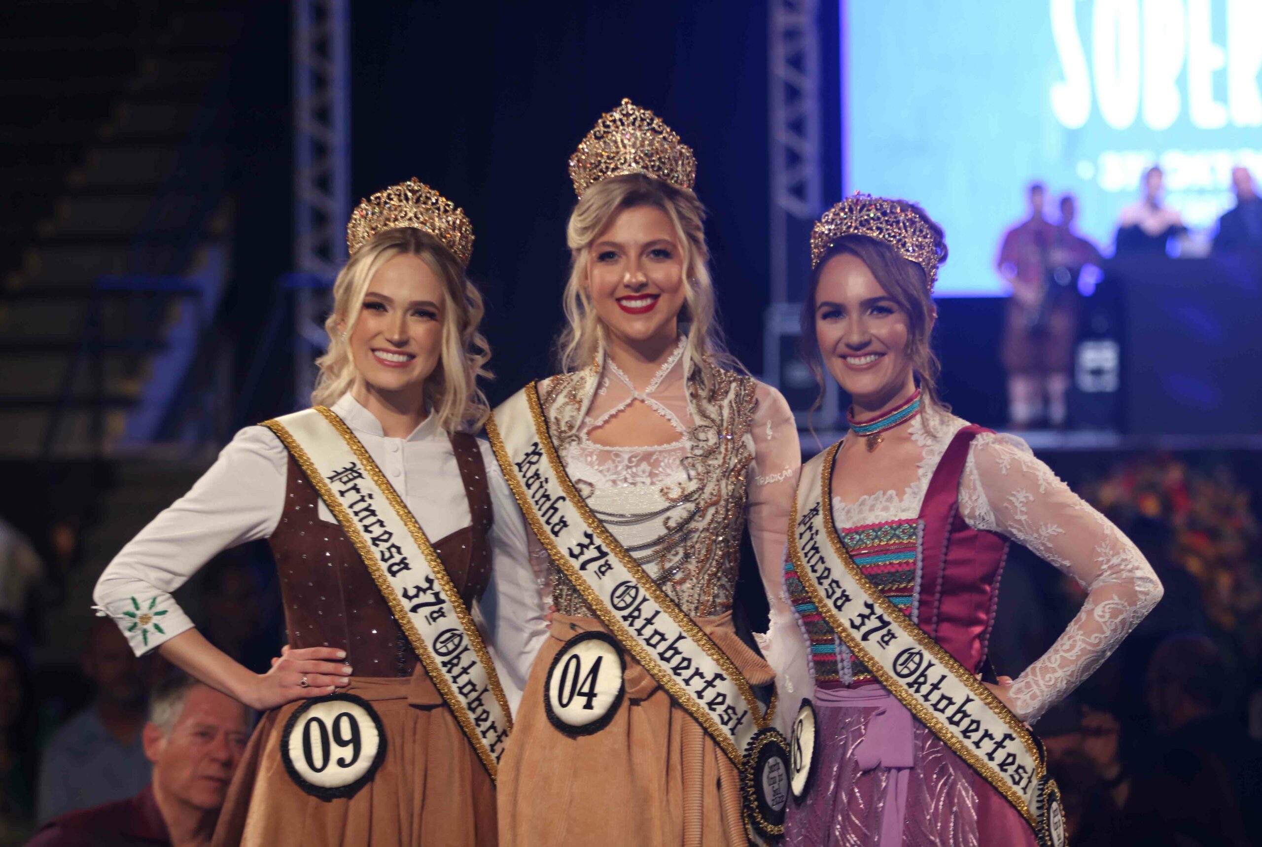 Mais uma etapa que antecipa a Oktoberfest foi concluída na noite deste domingo, 10. Foram escolhidas, no Ginásio Poliesportivo, as soberanas da 37ª edição do evento, que acontece de 6 a 9, 11 a 16 e 20 a 23 de outubro deste ano. O novo trio é formado pela rainha Daniele Andressa Müller e pelas princesas Thaissy Balczarek e Estéfani Aline Wegmann. As beldades serão responsáveis pela divulgação da Festa da Alegria e irão integrar a comitiva da festa.