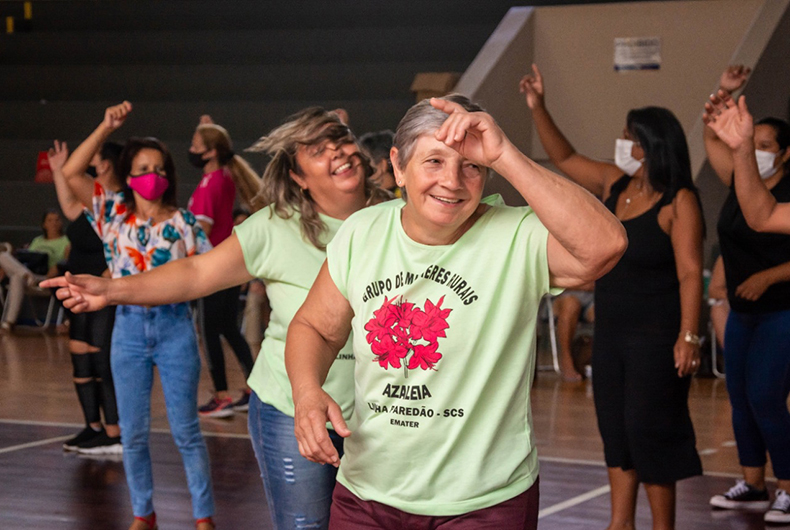 Moradora da localidade de Paredão, a agricultora aposentada Noemi Catarina Bublitz, de 66 anos, esbanjou disposição. Junto com as amigas do Grupo de Mulheres Rurais Azaleia, assistido pela Emater/RS-Ascar, ela revelou ser uma “pé-de-valsa” durante a oficina de danças conduzida pelo Departamento de Esportes da secretaria. E mostrou por que esta fase da vida é chamada de melhor idade. “O que a gente não aproveitou quando era nova e tinha que trabalhar e criar os filhos, tem que aproveitar agora”, comemorou.
