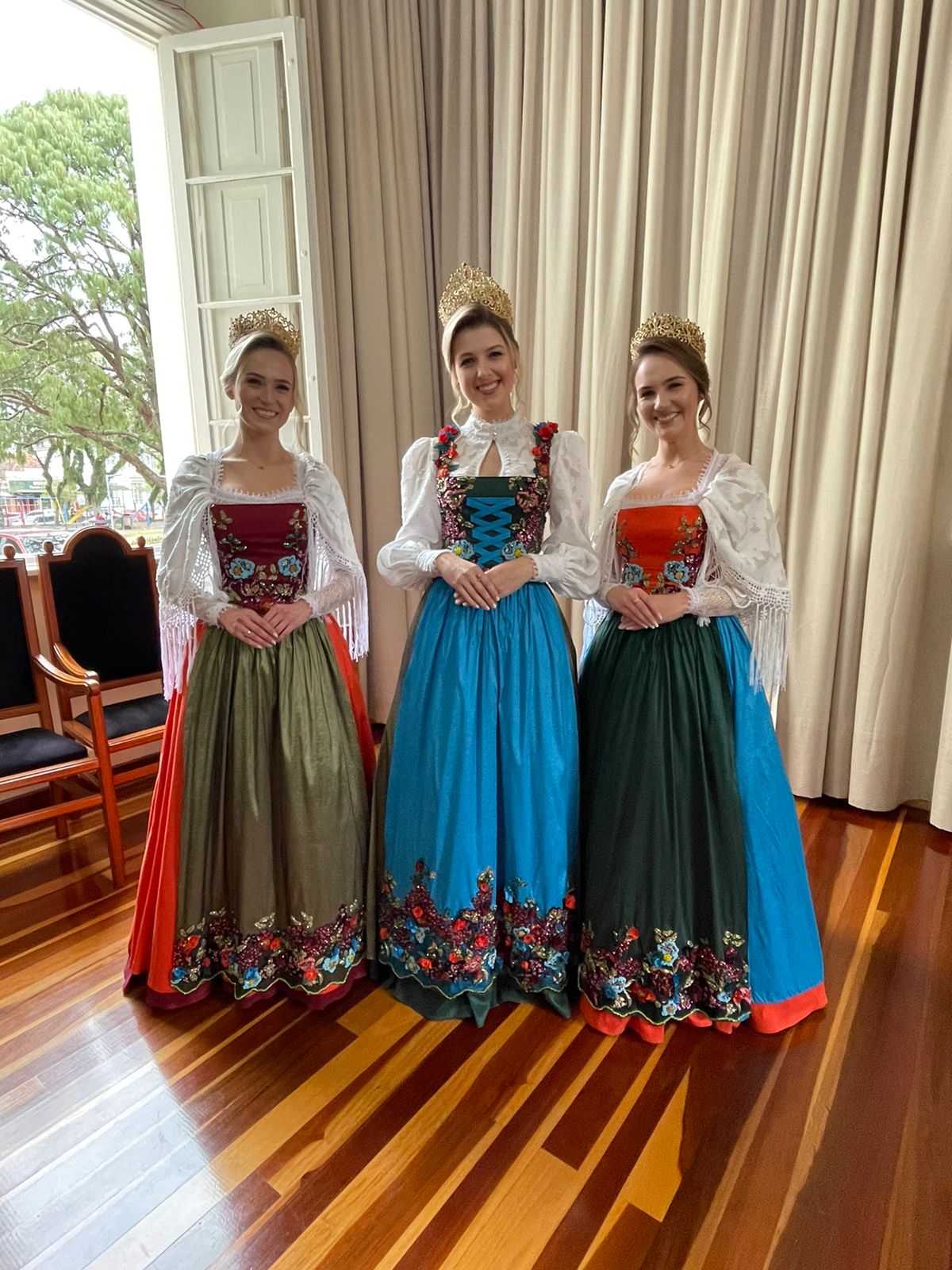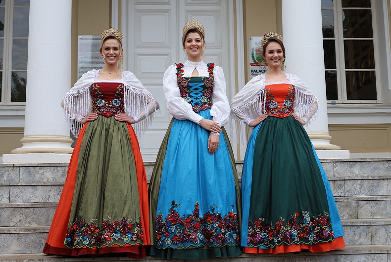 Os vestidos das soberanas da Oktoberfest carregam muitos significados, cores e bordados. Mas será que foi sempre assim? A primeira edição da Festa da Alegria aconteceu em 1984 e os trajes eram bem diferentes dos apresentados nessa quarta-feira, 25, pela nova corte da Oktober, formada pela rainha Daniele Andressa Müller e as princesas, Thaissy Balczarek e Estéfani Aline Wegmann.