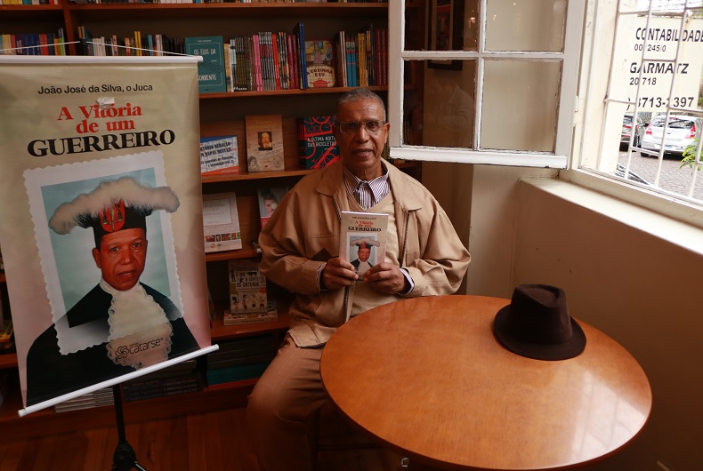 A dedicatória já estava na primeira página do livro, colocado sobre a mesa, ao lado do chapéu. O banner de divulgação já havia sido posicionado no tripé. Foi dessa forma que João José da Silva, o Juca, recebeu a Gazeta do Sul nessa quinta-feira, 18, na Livraria Iluminura, para falar sobre o livro autobiográfico de 272 páginas, intitulado A vitória de um guerreiro, com selo da Editora Catarse. Mais do que pontual, preferiu chegar antes do horário marcado, a fim de organizar o ambiente para a entrevista.