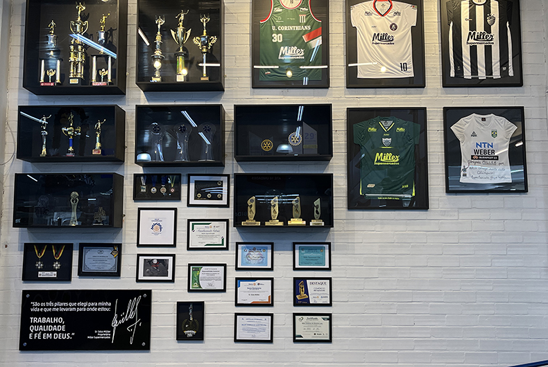 Para complementar a homenagem, o espaço exibe um depoimento de Celso Müller e declarações de entidades apoiadas, refletindo o compromisso contínuo da rede com a comunidade. A exposição também inclui um painel que conta a história de conquistas da rede, com um espaço reservado para destacar os funcionários do mês e futuras conquistas que o Miller pretende compartilhar.