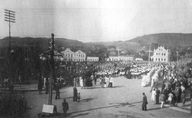 Lá fui eu. Já havia bastante gente. Não me lembro bem qual era o motivo da manifestação. Dali a pouco chegou o “Choque” e fez uma barreira ali bem na esquina com a Osvaldo Aranha.