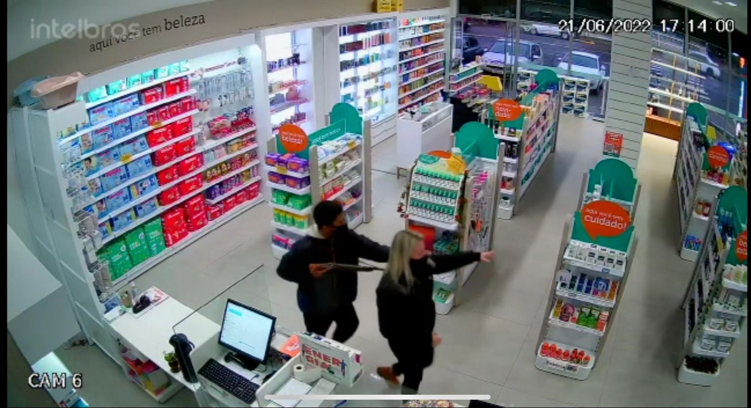 No dia 21 de junho, com arma longa, infrator atacou uma farmácia em Santa Cruz