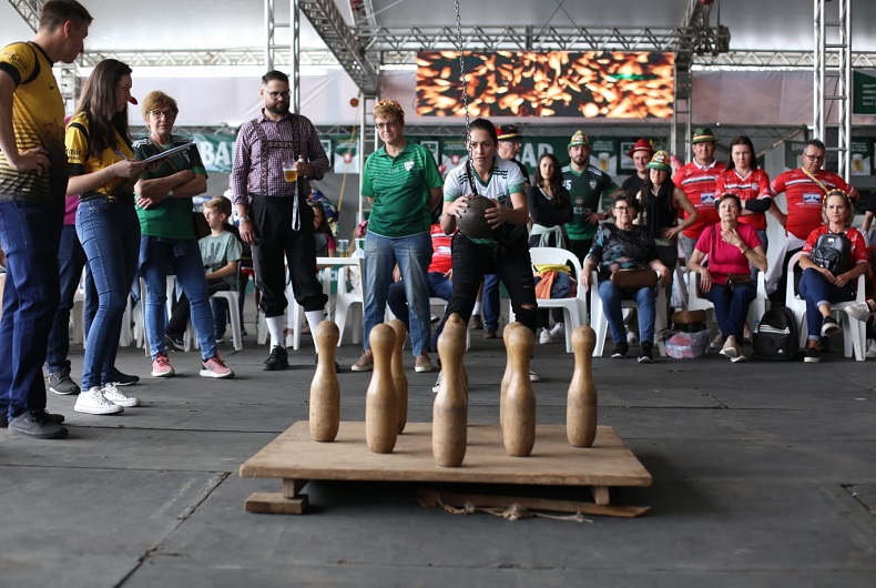 A segunda semifinal das Olimpíadas Rurais atraiu a atenção dos visitantes do Parque da Oktoberfest na tarde deste domingo, 16. Quatro equipes disputaram vagas nas finais em cinco categorias: bolão de bola presa, bolão de mesa, corte de lenha, corrida de carrinho de mão e cabo de guerra.