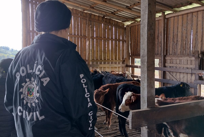 A Polícia Civil, através da Delegacia de Polícia Especializada na Repressão aos Crimes Rurais e Abigeato (Decrab) de Camaquã, cumpriu, nesta sexta-feira, 5, mandados de busca e apreensão em quatro propriedades rurais. As ações ocorreram nas cidades de Guaíba, Sertão Santana e Sentinela do Sul, locais em que apreenderam 16 terneiros machos, com idade em torno de um ano. Os animais foram furtados no município de Encruzilhada do Sul.