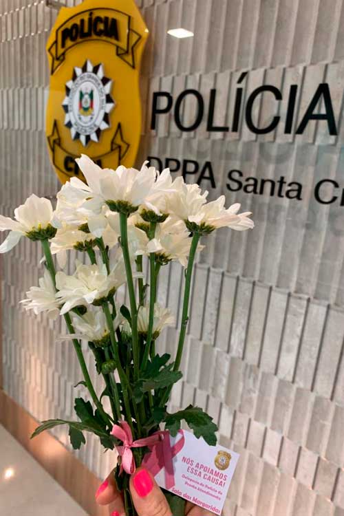 A Delegacia de Polícia de Pronto Atendimento de Santa Cruz do Sul (DPPA) faz nesta sexta-feira, 11, uma ação alusiva ao Outubro Rosa. Margaridas estão sendo distribuídas e cucas são oferecidas às mulheres que procurarem a delegacia.