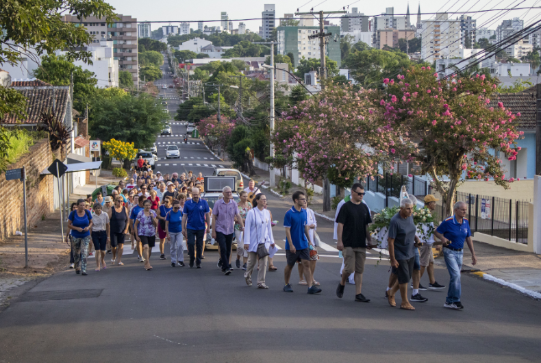 Entre as dezenas de pessoas que participaram do evento religioso estavam Zilá Puntel, de 75 anos, e Avenisse Kipper, de 69. Elas são moradoras do Bairro Santo Inácio – inclusive vizinhas de rua – e participam da procissão há muitos anos. “É muito bom, eu agradeço por todas as bênçãos”, afirmou Zilá. Já Avenisse elogiou a paisagem da gruta, onde é finalizada a procissão. “Eu adoro essa caminhada e agradeço pela saúde e a família.”