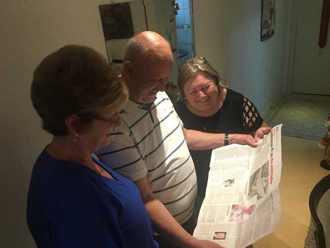 Helena também levou a Airton e para a esposa dele, Rejane, a reportagem da Gazeta do Sul que resgatou a história do sequestro